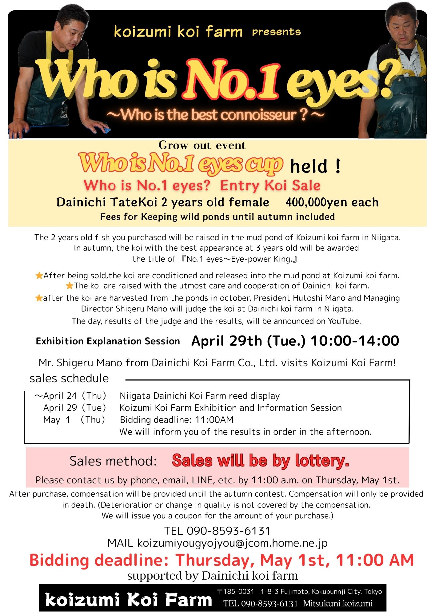 小泉養魚場は、夢のある錦鯉を生産・販売している、錦鯉の専門店です。